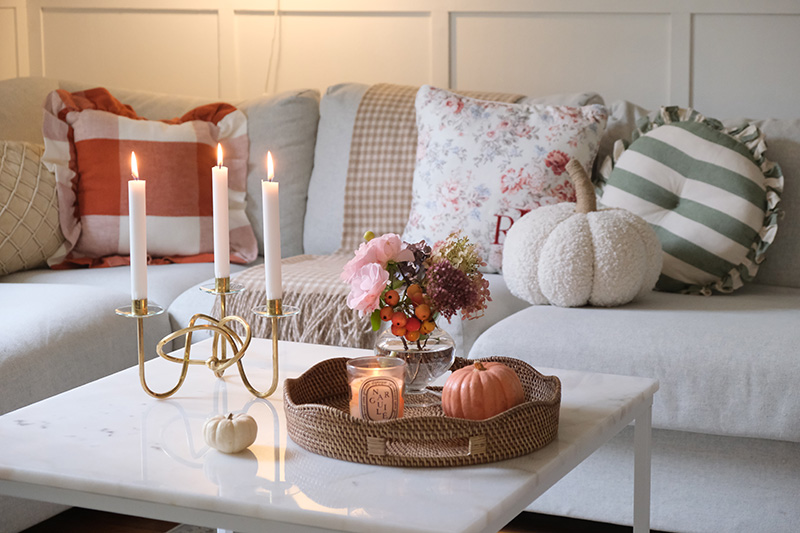 Ich habe ein paar Blumen ins Haus geholt und gemerkt, wie sehr das allein schon die Stimmung verändert. Zusammen mit Kerzen und kleinen Lichtern entsteht sofort diese ruhige, warme Atmosphäre, die ich im Herbst so liebe.