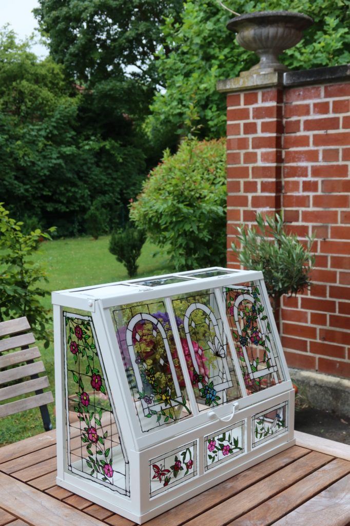 Es war eine wunderbare Beschäftigung, die nicht nur richtig Spaß gemacht hat, sondern am Ende auch ein tolles Ergebnis geliefert hat. Die bunten Motive machen das Gewächshaus zu einem echten Hingucker, ein kleines Highlight auf ihrer kleinen Terrasse.