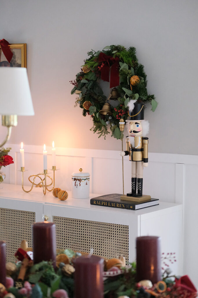 Passend dazu habe ich auch noch einen Wandkranz gebunden. Der Nussknacker steht schon bereit.