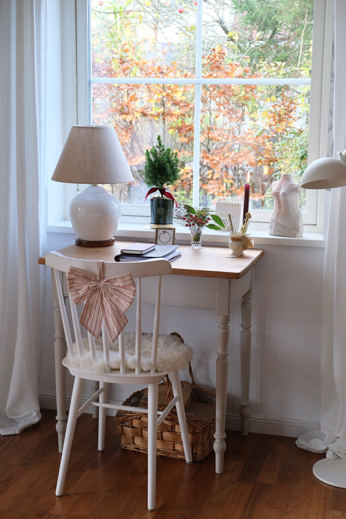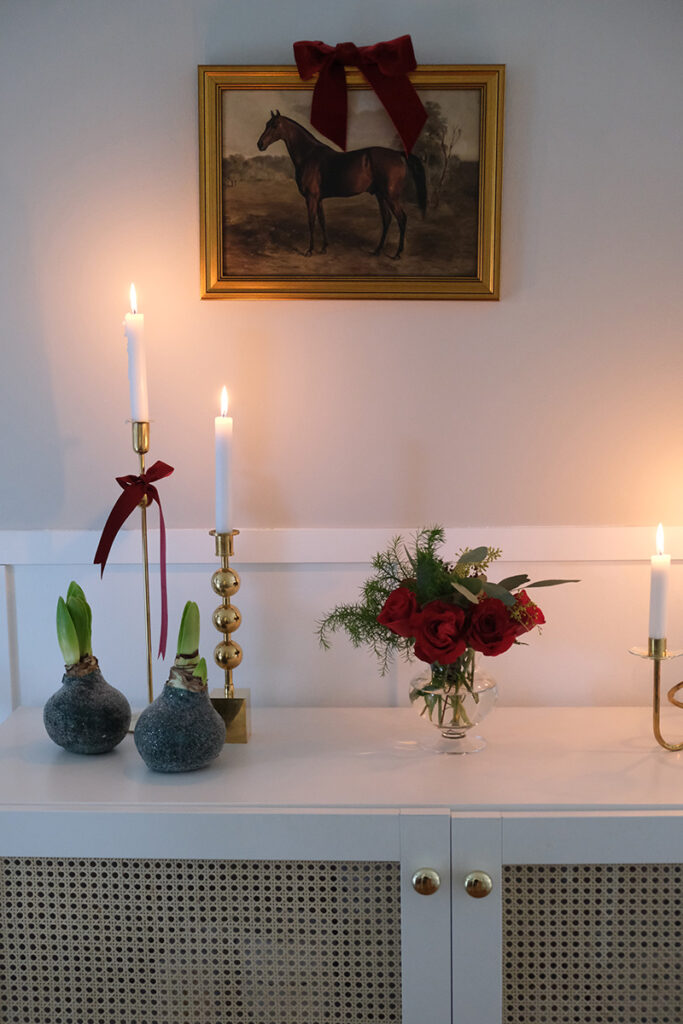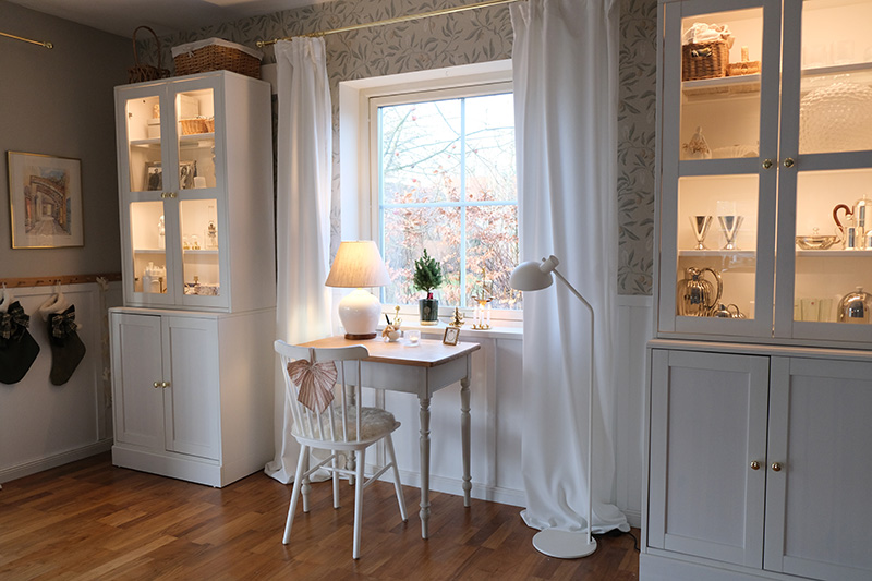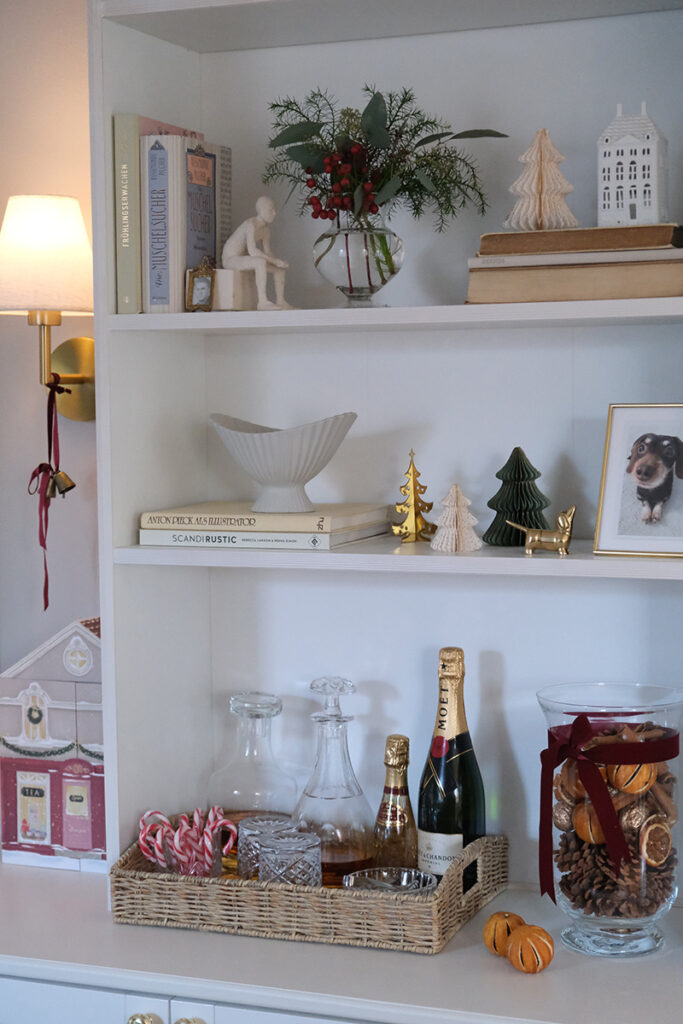 Zwischen Eukalyptus und Tannengrün habe ich ein paar schlichte, stilvolle Elemente eingebaut. Nicht zu viel, eher zurückhaltend, damit alles ruhig bleibt. Und das Schönste ist dieser Duft. Sobald man den Raum betritt, riecht es nach Tannengrün und Weihnachten fühlt sich plötzlich ganz nah an.