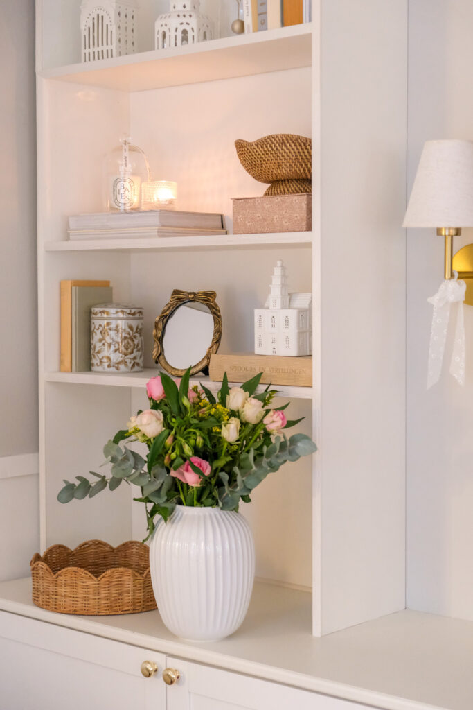 Was ich an diesem Regal besonders liebe, ist die Freiheit beim Dekorieren. Je nach Jahreszeit, Stimmung oder Anlass arrangiere ich Bücher, persönliche Erinnerungsstücke oder kleine Fundstücke neu. So verändert sich die Ecke immer wieder und bleibt lebendig.