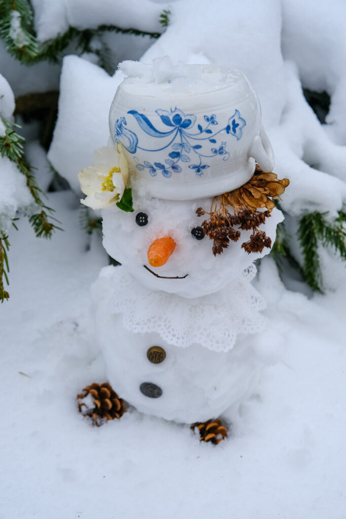 Zuhause haben wir die Wintertage ebenfalls genossen. Wir haben Eislichter vorbereitet, die nachts draußen gefroren sind, kleine Schneemänner gebaut und unserem Schneemann sogar einen Kragen aus Tortenspitze verpasst. Solche kleinen Details machen mir immer besonders viel Freude.